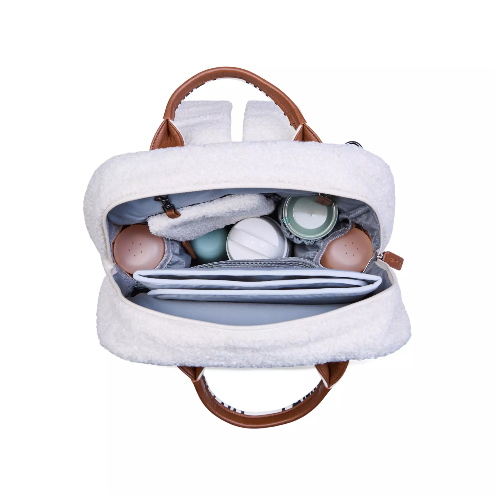 Součástí batohu je přebalovací podložka a termoizolační kapsy na láhev. Přehlednou organizaci obsahu batohu zaručuje množství vnitřních i vnějších kapes a úchytů. Díky speciální kapse pro vlhčené ubrousky jsou ubrousky vždy okamžitě po ruce připravené k použití. Úchyty na kočárek umožňují zavěšení batohu na rukojeť kočárku, úchyt na vytahovací rukojeť kufru vám usnadní cestování během dovolené.