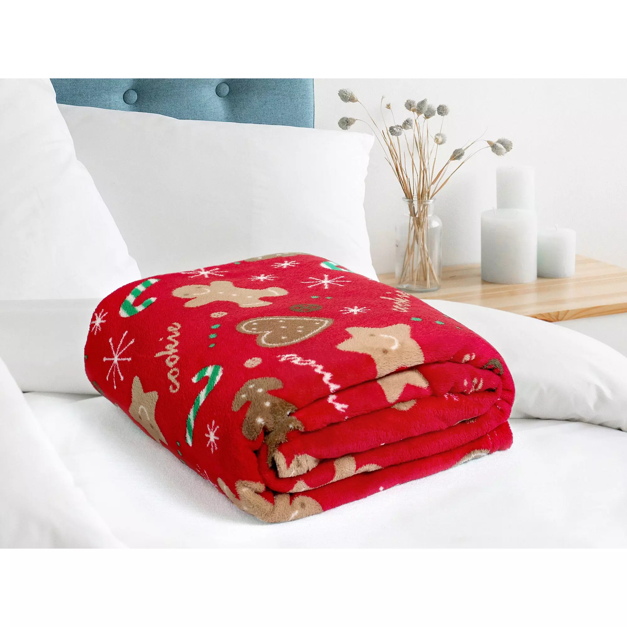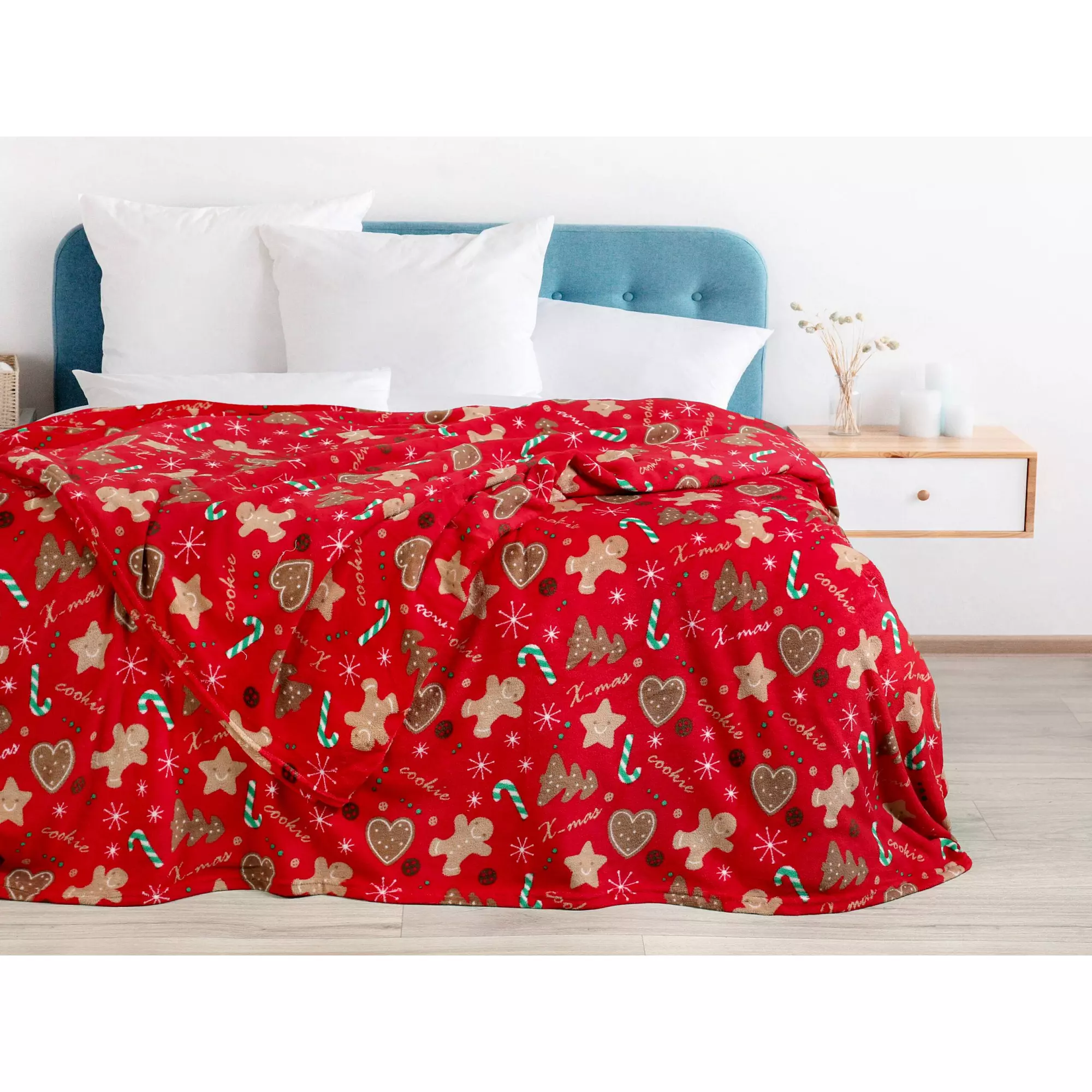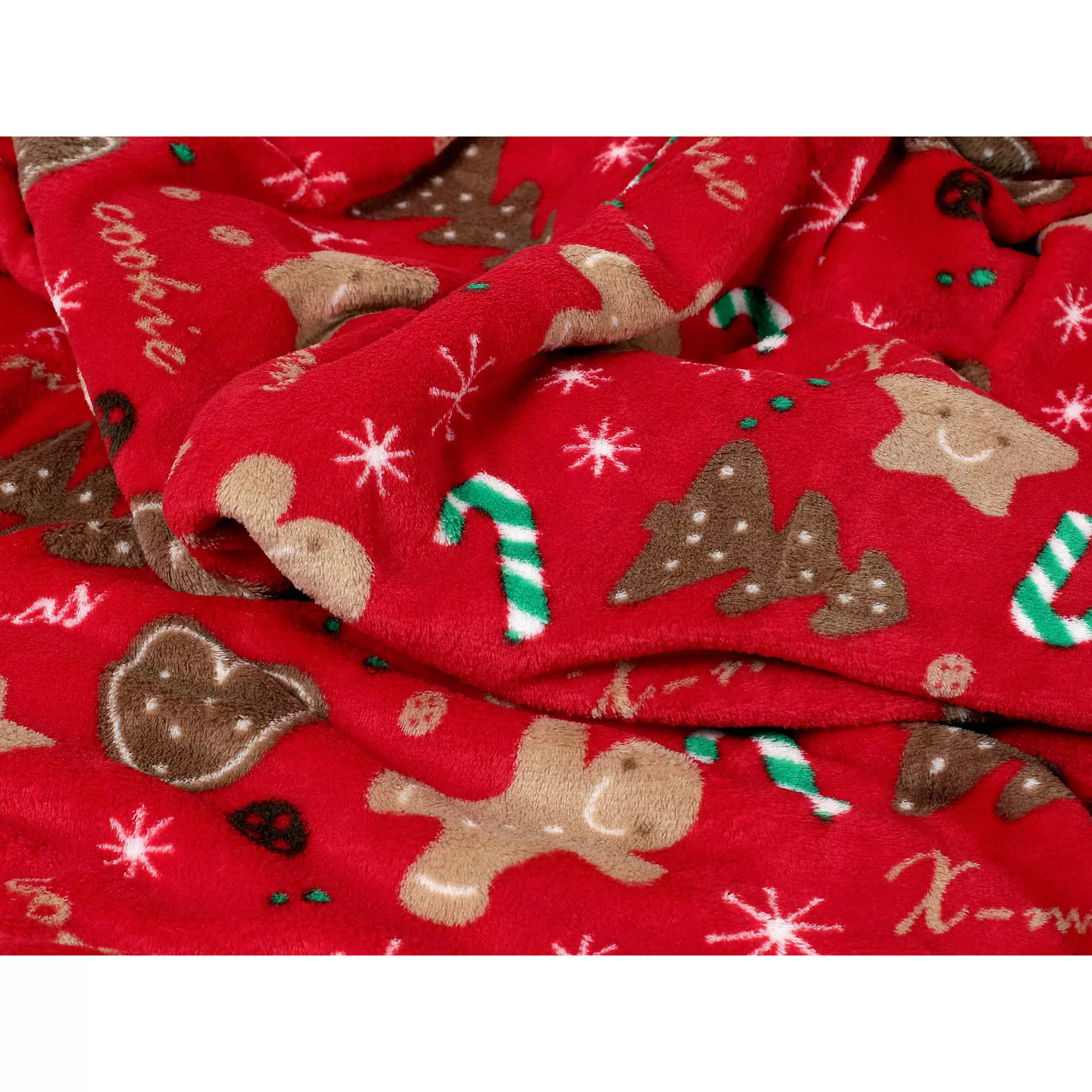 Vánoční deka Mikroflanel - perníčci na červené - 150x200