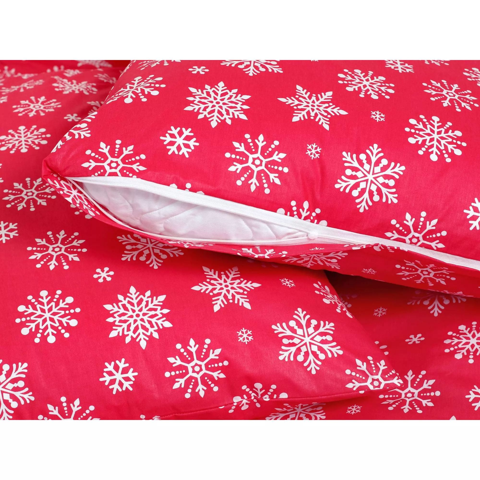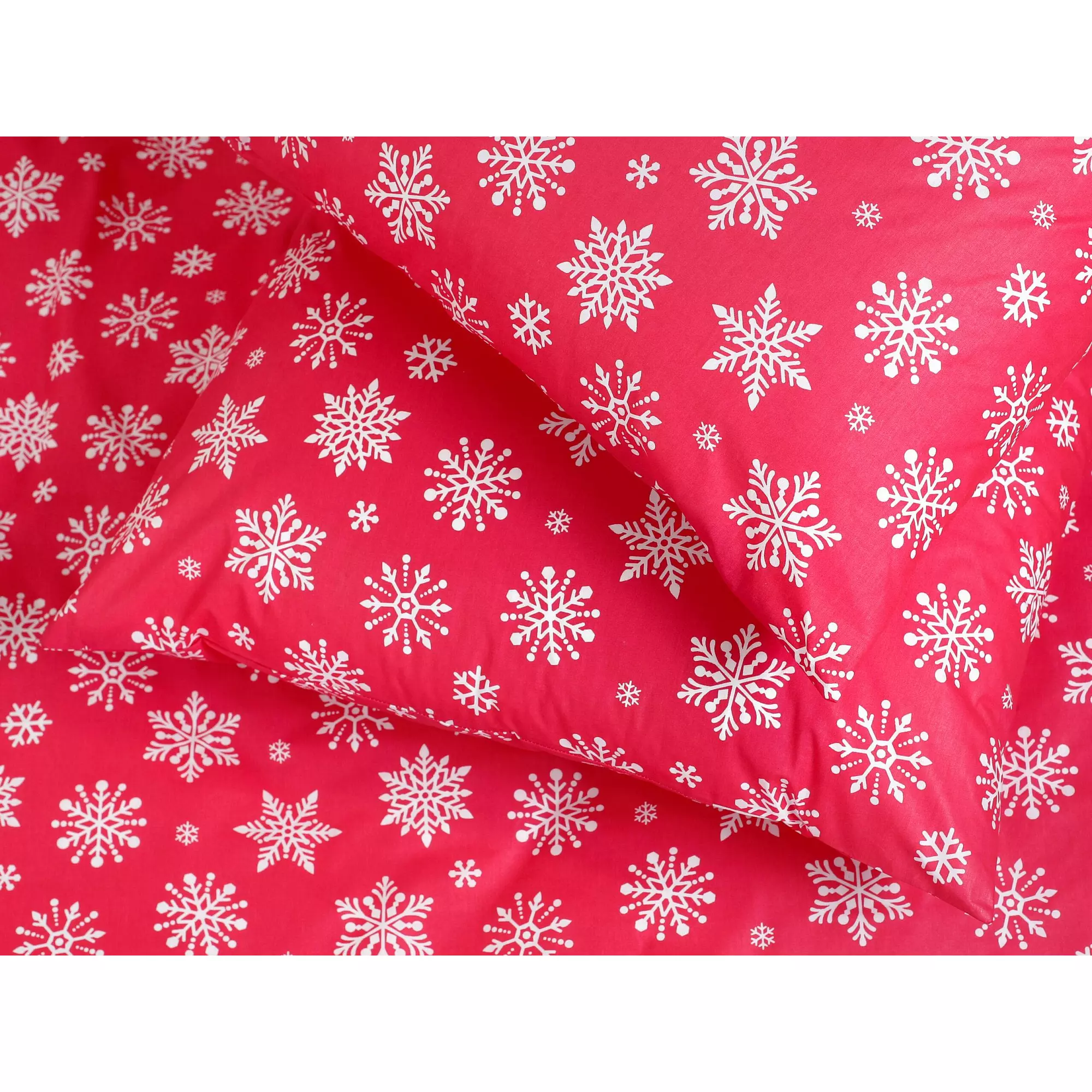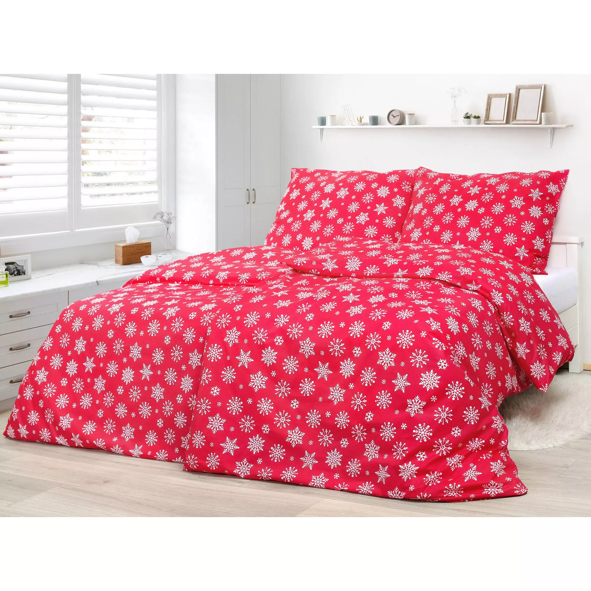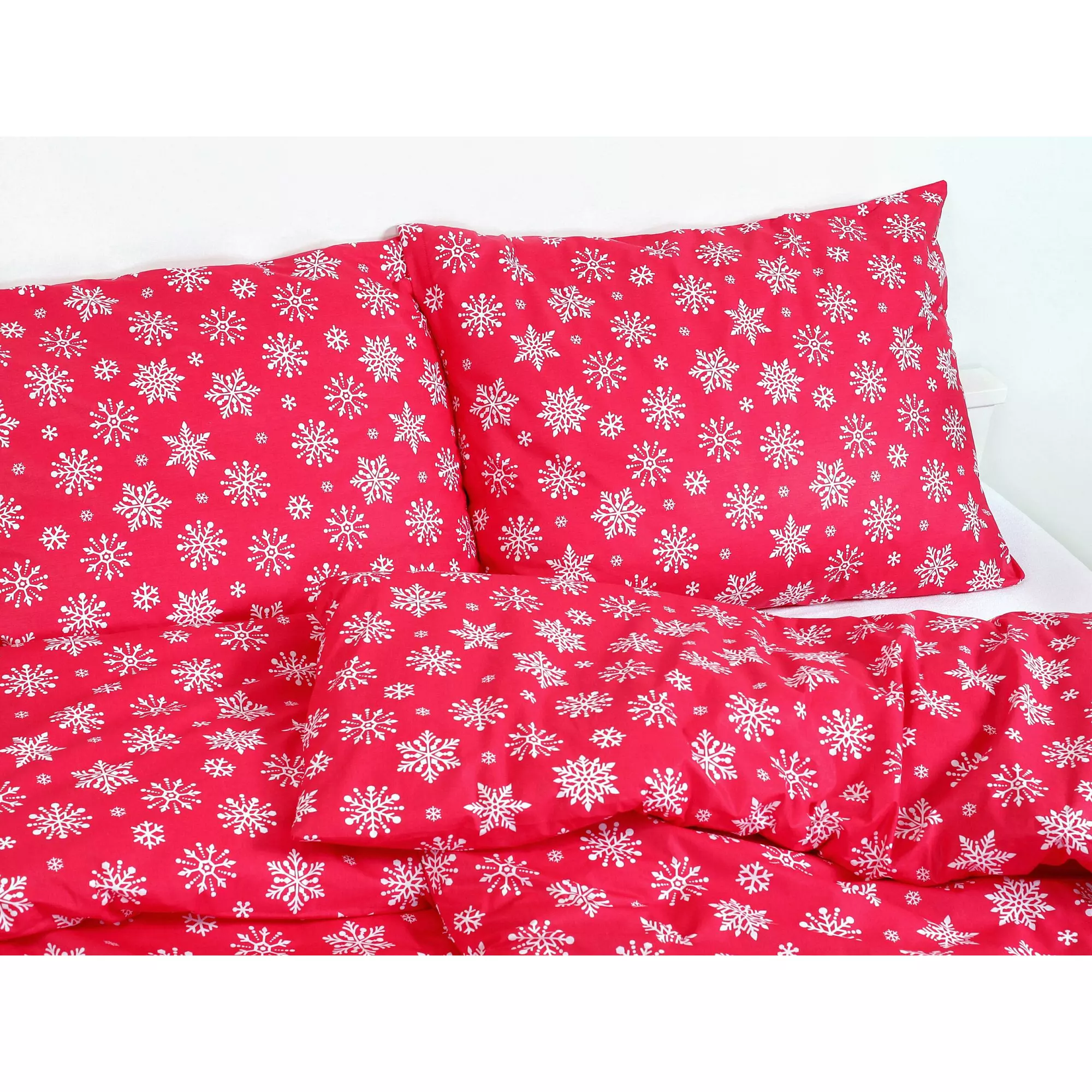 Vánoční bavlněné povlečení - bílé vločky na červené 140x200+70x90