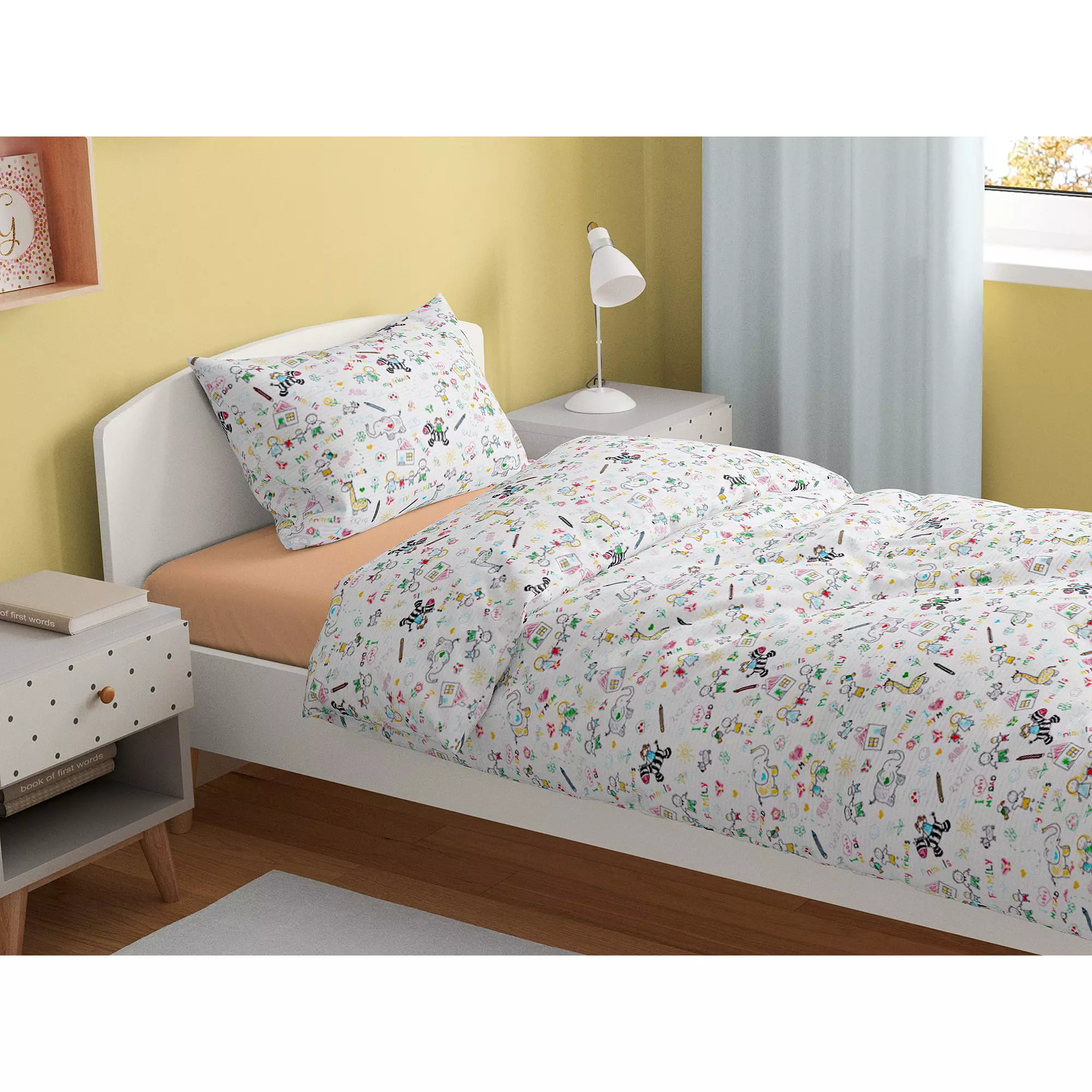 Motiv s omalovánkami přidává dětskému povlečení skvělý šarm a zpříjemní Vašim dětem spánek, přinášejíc do pokojíčku příjemnou atmosféru.