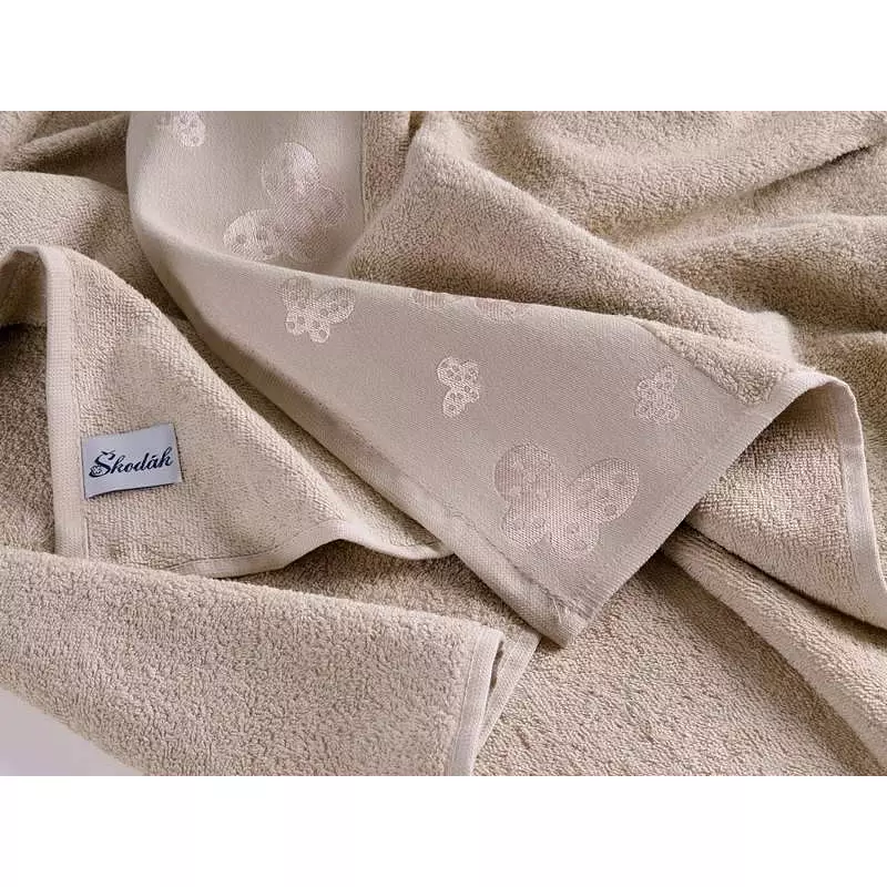 Náš froté ručník béžový, který je vyrobený ze 100% kvalitní dlouhovlákné česané bavlny, nabízíme v nádherné kolekci s motýlky.