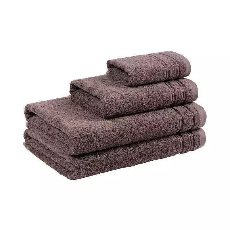 Šedohnědý froté ručník a osušku nabízíme v populárních rozměrech: 30×50 cm a 70×140 cm.